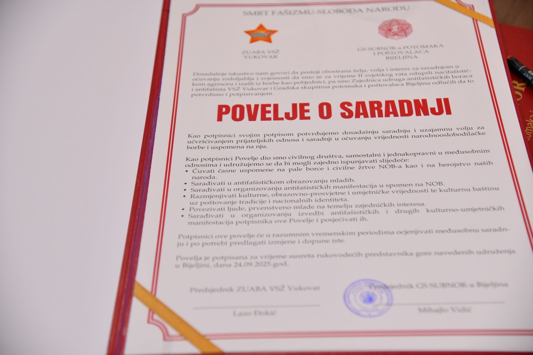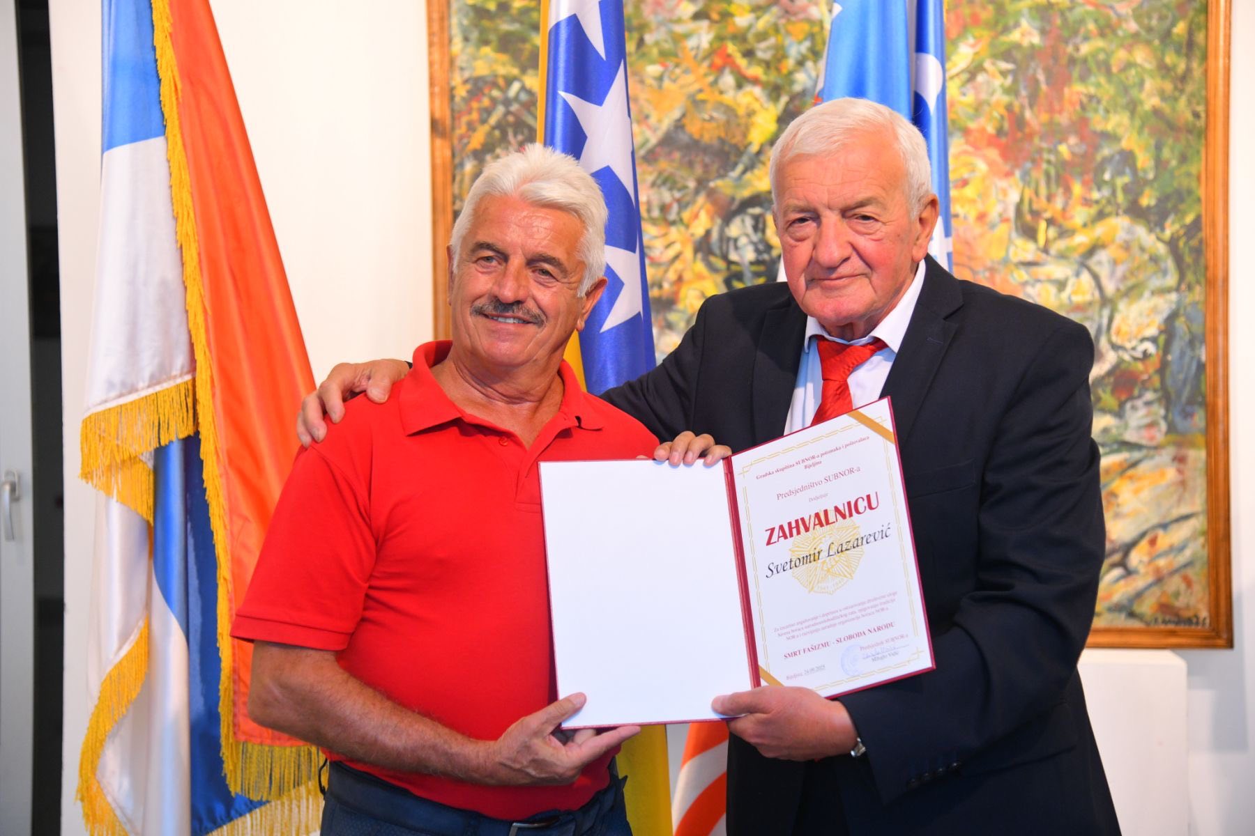 Видић није крио задовољство што Градска скупштине СУБНОР-а, потомака и поштовалаца Бијељина има одличну сарадњу са Градском управом и Градоначелником, а градоначелнику Петровићу су симболична признања за допринос очувању антифашистичких тековина уручили представници Удружења антифашистичких бораца сремско-вуковарске жупаније и САБНОР-а БиХ.