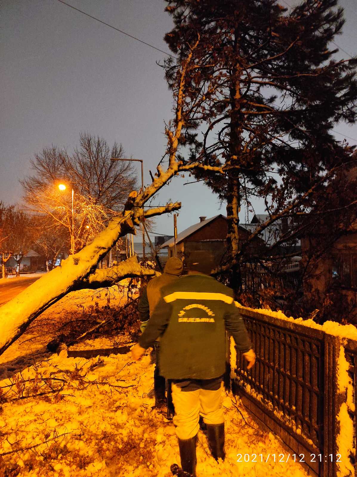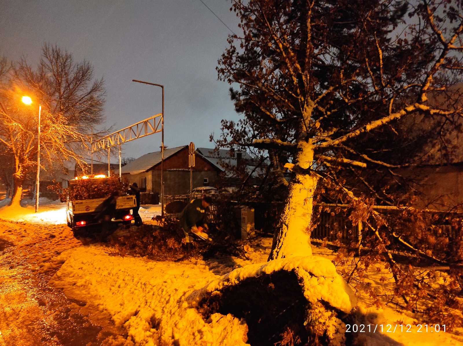 Радници предузећа "Комуналац" уклањају дрво које је пало на пут у Улици Раје Бањичића.