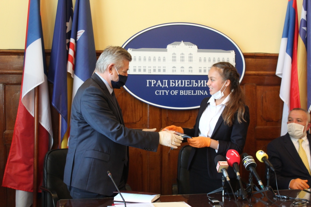 Амбасадор Дјечије амбасаде Међаши Мишел Мишковић поклонила је градоначелнику Бијељине заштитни визир који је израђен у Амбасади.