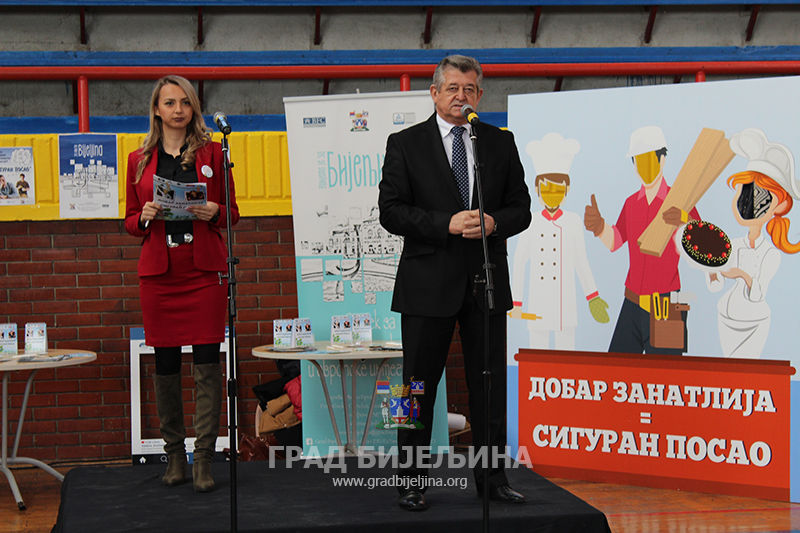 Информисање ученика завршних разреда основних школа о свим постојећим занимањима у средњим школама у Граду Бијељина, као и подизање свијести ученика и родитеља о стручним занимањима и могућностима за запослење након завршетка средње школе били су главни циљеви данашњег Сајма средњих школа и занимања који је данас одржан у Бијељини. Сајам под слоганом „Изабери школу – изабери будућност“ трећу годину за редом организује Градска управа Града Бијељина у сарадњи са Омладинским комуникативним центром Бањалука. На Сајму су се представиле средње школе са подручја Града Бијељина, као и Средња стручна школа Угљевик.Организатори оцјењују да овакви сајмови дугорочно гледано доприносе смањењу стопе незапослености, јер помажу ученицима при избору занимања за које ће се школовати, али и упознавању ученика и њихових родитеља са понудом и потражњом занимања на тржишту.- Прелаз из основне у средњу школу важан је животни догађај, а тиме и стресан период, како за дјецу, тако и за родитеље. Избор школе, као и избор будућег занимања, једна је од првих већих и важнијих одлука коју дијете доноси. Због тога организујемо овакве активности, да бисмо основнцима помогли да се лакше одлуче за будуће занимање, као и да их анимирамо да упусују дефицитарна занимања која су потребна привреди нашег Града - навео је градоначелник Бијељине Мићо Мићић.Ове године Сајам је прије свега фокусиран на дефицитарна стручна занимања (столар, машински техничар, обрађивач метала резањем, кувар, кулинарски техничар, конобар, пекар, прехрамбени техничар и прехрамбени прерађивач) која су промовисана кроз пројекат „Практична настава на радном мјесту“ – Програм „Прилика плус“. Пројекат је финансиран од стране Владе Швајцарске, суфинансиран од стране Града Бијељина, а на нивоу Републике Српске спроводи га Републичка агенција за развој малих и средњих предузећа.- Три стручне школе са подручја Града Бијељина и предузећа која су учествовала у пројекту су на посебан начин промовисала ова занимања као и све активности које су у оквиру Пројекта реализоване. Поред ових занимања посебан фокус је стављен и на занимање фризера, које је годинама једно од најдефицитарнијих и истовремено најактуелнијих, а увођење тог занимања је планирано за школску годину 2018/2019 - најавила је шеф градског Одсјека за локални економски развој и европске интеграције Анкица Тодоровић.Анте Јурић Маријановић из Омладинског комуникативног центра истакао је да је бијељинска Градска управа показала највећу иницијативу од свих локалних заједница у којима се организују овакви сајмови.- Већ прошле године смо имали конкретне резултате, када је у Техничој школи формиран нови смјер за дрвопрерађиваче - столари - подсјетио је Јурић Маријановић.