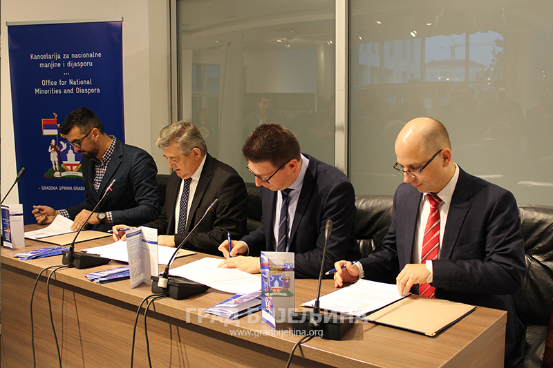 У Бијељини је данас званично почела с радом прва Канцеларија за националне мањине на локалном нивоу у БиХ. Ова канцеларија ће бити сервис грађана припадника националних мањина и њихових организација која ће помагати при рјешавању проблема и остваривању интереса овог дијела становништва Семберије.Овом приликом потписан је и Меморандум о разумијевању између Града Бијељина, Федералне уније европских националности, Њемачке организације за сарадњу (ГИЗ) и Удружења грађана за промоцију образовања Рома „Отахарин“.- Бијељина је данас још једном показала да је средина у којој се цијени и његује толеранција, а управо на Међународни дан толеранције отворили смо Канцеларију за националне мањине. У Бијељини имамо ромску и словачку националну мањину и с њима имамо јако добру сарадњу. Надамо се да ћемо на овај начин наставити унапређење положаја националних мањина у нашем Граду и помоћи им да се осјећају једнаким са свим грађанима. Бијељина предњачи у поштовању људских права и наставићемо да будемо отворен и толерантан Град за све грађане - истакао је градоначелник Мићић додајући да локална заједница, у сарадњи са међународним и локалним невладиним организацијама, већ годинама у континуитету спроводи пројекте стамбеног збрињавања социјално најугроженијих ромских породица, изградње инфраструктуре у насељима у којима живе националне мањине, хуманитарне активности, подржава пројекте образовања ромске популације, помогнута је изградња и уређење околине словачке евангелистичке цркве и гробља – све с циљем укључивања националних мањина у друштвени живот у Граду Бијељина.Представник ГИЗ-а Михаел Самец захвалио се градоначелнику Бијељине на реализацији идеје, захваљујући којој је отворена Канцеларија за националне мањине.- Велика нам је част што смо промотери ове идеје. У почетку ни сами нисмо знали шта ће бити резултат овог пројекта, а на крају је отворена Канцеларија за националне мањине, која ће унаприједити положај мањинских народа на подручју Града - навео Самец , додајући да се нада да ће оваква идеја да се шири широм БиХ.Шеф Канцеларије Савјета Европе у БиХ Драхослав Штефанек изразио је наду да ће и други градови у БиХ слиједити добар примјер Бијељине.Предсједник „Отахарина“ Драган Јоковић подсјетио је да ово Удружење годинама ради на преузимању добрих идеја и позитивних искустава када је ријеч о унапређењу положаја националних мањина.- Надам се да да ће ова Канцеларија бити велики помак за положај припадника националних мањина у Бијељини. Циљ нам је инклузија националних мањина у друштво, умјесто асимилације. Такође, очекујемо да ће ово имати велики значај за очување културе, традиције и обичаја националних мањина - навео је Јоковић.Замјеник министра за људска права и избјеглице БиХ Предраг Јовић навео је да ово Министарство сваке године издваја два милиона конвертибилних марака за стамбено збрињавање, запошљавање и здравствену заштиту Рома, као и средства преко Јавног позива за заштиту и права националних мањина. Ове године издвојено је 150.000 КМ за промоцију националних мањина у БиХ.- У БиХ постоји 17 националних мањина, од којих су најугроженији Роми, због чега је и направљен Акциони план 2017-2020, за помоћ ромској популацији - истакао је Јовић, додајући да ће Министарство радити на промоцији пројекта отварања Канцеларије 