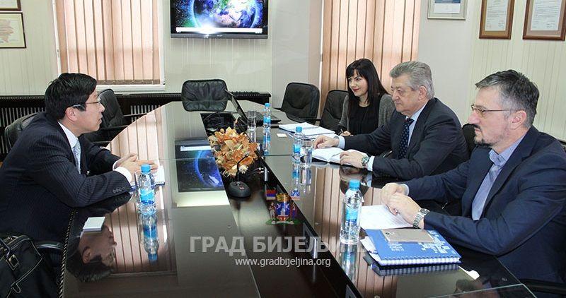 Бијељину је данас посјетио отправник послова Амбасаде Јапана Терући Акихито, који је са градоначелником Бијељине Мићом Мићићем разговарао о досадашњој и будућој сарадњи.- Први пут сам посјетио овај Град и задовољство ми је што сам имао прилику да разговарам са градоначелником Мићом Мићићем. Наставићемо сарадњу у области образовања и социјалне заштите -навео је Терући.Он је најавио да ће у понедељак потписати уговор о донацији Амбасаде Јапана Основној школи „Кнез Иво од Семберије“ од 70.000 евра, захваљујући којој је бити реновирана столарија у овој школи.Уз ријечи захвалности на донацији, градоначелник Мићић је подсјетио да ово није прва помоћ коју је Бијељина добила од Јапана.- Наши пријатељи из Јапана нам помажу већ дужи низ година. Између осталог, финансирали су проширење ОШ „Свети Сава“, помогли су нам у обнови ОШ „Меша Селимовић“ у Јањи након поплава, а захваљујући њиховој донацији реновирали смо и спортску салу у ОШ „Стеван Немања“ у Драгаљевцу, као и главну зграду ОШ „Вук Караџић“ у Бијељини. Такође, уложили су и дио средстава за изградњу Дневног центра у оквиру нове зграде Центра за социјални рад - подсјетио је Мићић.На данашњем састанку договорено је и да Бијељина буде учесник пословног скупа који ће организовати Министарство спољне трговине и економских односа Савјета Министара БиХ, у Токију крајем маја ове године, а на коме ће бити представљене могућности сарадње БиХ и Републике Српске са привредницима из Јапана.- Представићемо привредни потенцијал Града Бијељина и мислим да ћемо од тога имати вишеструку корист - најавио је Мићић.