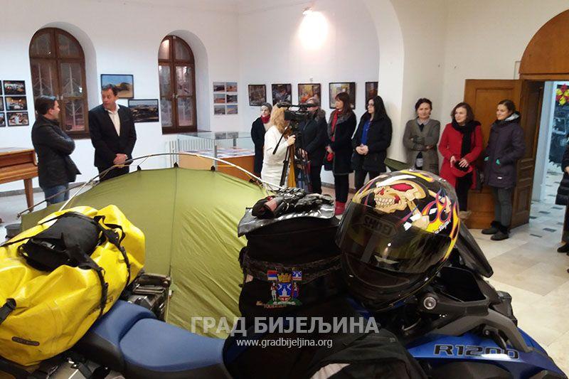 У Музеју Семберије изложено је око 120 одабраних фотографија које приказују предјеле, људе и историју Сирије, Јордана и Египта коју је аутор Давор фон Винтерфелд, унук чувеног бијељинског фотографа Фердинанда Винтерфелда, вјешто документовао фотоапаратом током својих путовања на мотоциклу по Блиском истоку.Изложба под називом ,,15.000 километара на два точка“ круна је Даворове експедиције од Розенхајма у Њемачкој до оазе Сива у Сахари. На то путовање се Давор фон Винтерфелд запутио 2009. године, након што је купио мотор чија кубикажа и квалитет омогућавају путовање по цијелом свијету.- Прије осам година остварио се мој дугогодишњи сан да се на два точка упутим ка Египту и стигнем до ове оазе у срцу Сахаре. Пут дуг 15.000 километара водио је из Њемачке, преко Балкана, затим Турске, Јордана, Сирије до Египта, а у повратку преко Израела, Кипра, Турске, те поново Балкана, али овај пут са обавезним заустављањем у Бијељини, мом родном граду - навео је Давор, истакавши да дневник овог путовања садржи преко пет хиљада фотографија од којих је шест стотина први пут изложено 2013. године у Розенхајму, у оквиру презентације новог БМW-овог модела мотоцикла. На изложби у Музеју Семберије, поред фотографија, нашло се мјеста и за мотоцикл којим је Давор путовао, као и за разапет шатор у ком је спавао на овом пет седмица дугом путовању. Изложба ће остати отворена до краја марта и представља посебну прилику за упознавање Јордана, Сирије и Египта, кроз јединствене пејзаже и портрете људи са којима се сусретао на овом путовању. - То је дио свијета који краси посебан крајолик, али посебни су и људи и насеља. Ту посебност покушао сам ухватити фотоапаратом, а надам се да ће то моћи да примијети и сваки посматрач фотографија које сам изабрао за ову изложбу у Бијељини - навео је Давор фон Винтерфелд. Мапа пута документована је фотографијама на којима су сцене из свакодневног живота од Дамаска, преко пустињског бисера Палмире, јорданске обале Мртвог мора међу којима се издваја Мала Петра, локалитет који је запостављен у односу на ,,старију сестру“ Петру, до обале Средоземног мора код Александрије у Египту и оазе Сива која је од Каира удаљена 560 километара, односно 50 километара од либијске границе. - Најпознатији посјетиоци оазе Сива били су Александар Македонски који је посјећивао познато пророчиште и храм бога Амона и краљица Клеопатра која је у оазу долазила на излете и купање - издвојио је Давор своје успомене, нагласивши да је оаза Сива више хиљада година дом Бербера који и данас говоре сопственим језиком који се зове сива језик.