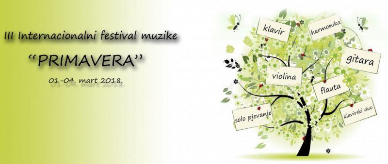 Tрећи по реду Интернационални фестивал музике „Примавера“, биће одржан од 1. до 4. марта у Етно селу „Станишићи“, најављено је из Удружење грађана „Музички умјетници Семберије“ које организује ову манифестацију.Као и претходних година, Фестивал је привукао велику пажњу и интересовање музичара из региона, а на трећој „Примавери“ се очекује учешће више од 300 младих умјетника који похађају основне и средње музичке школе у Србији, Македонији, Словенији, Хрватској и БиХ.Према ријечима предсједника „Музичких умјетника Семберије“ Синише Пајића, поред такмичарског дијела, у сва три фестивалска дана љубитеље класичне музике очекују концерти побједника Фестивала који ће се одржавати у вечерњим часовима, а улаз за сва такмичења и концерте током читавог фестивала је слободан и отворен за јавност.„Примавера“ ће бити отворена 1. марта, у 19,00 часова, концертом чувеног пијанисте Александра Сердара из Србије, а три дана након тога одвијаће се такмичење у дисциплинама: клавир, клавирски дуо, виолина, хармоника, флаута, гитара и соло певање.- Велика је част свима нама из Удружења да својим радом обогатимо културни живот у Граду, понудимо грађанима атрактивне културне садржаје и тако ставимо Бијељину на културну мапу региона - навео је Пајић.Умјетнички директор фестивала „Примавера“ Наташа Собо, поручила је да мисија „Музичких умјетника Семберије“ није само промоција класичне музике већ и његовање највиших људских вриједности.- Удружење чине професори који су се окупили око исте идеје, а то је да се подигне свијест о музици и умјетности на један већи ниво. Наставили смо и са мастер класовима за ученике и професоре виолине, клавира и хармонике, које смо одржавали у Музичкој школи „Стеван Стојановић Мокрањац“ у Бијељини на којима смо имали еминентне предаваче - навела је Собо.