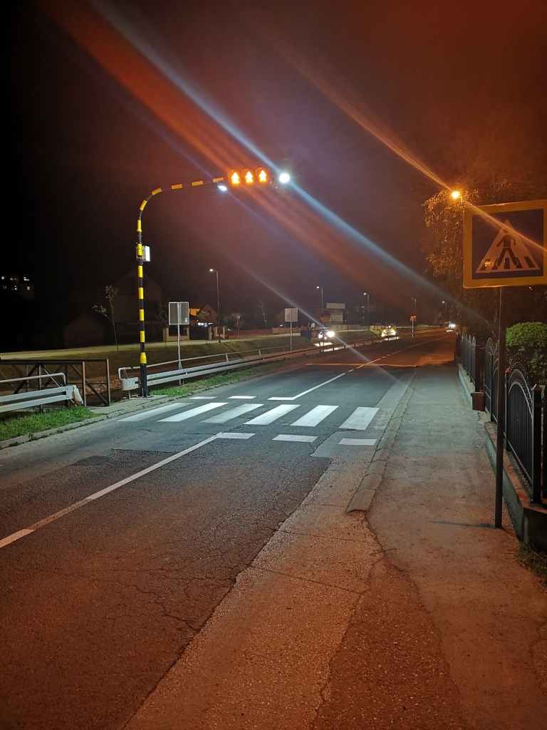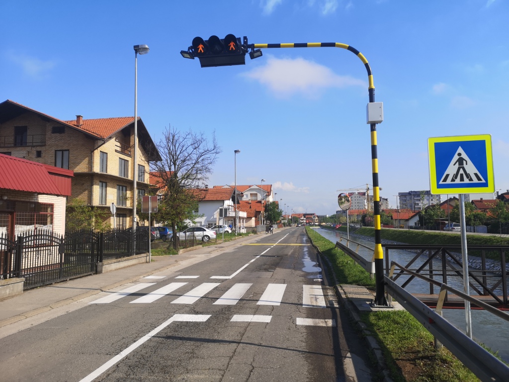 Овај пјешачки прелаз је први на уличној мрежи града Бијељина који је додатно освијетљен и означен свјетлосним сигналима за упозоравање.