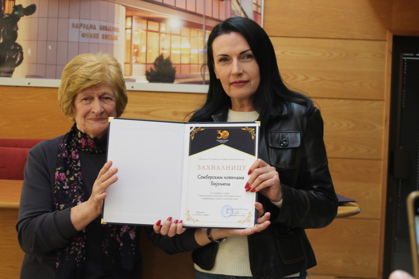 У Народној библиотеци „Филип Вишњић“ у Бијељини је данас обиљежено јубиларних 30 година постојања и рада Савеза глувих и наглувих Републике Српске.