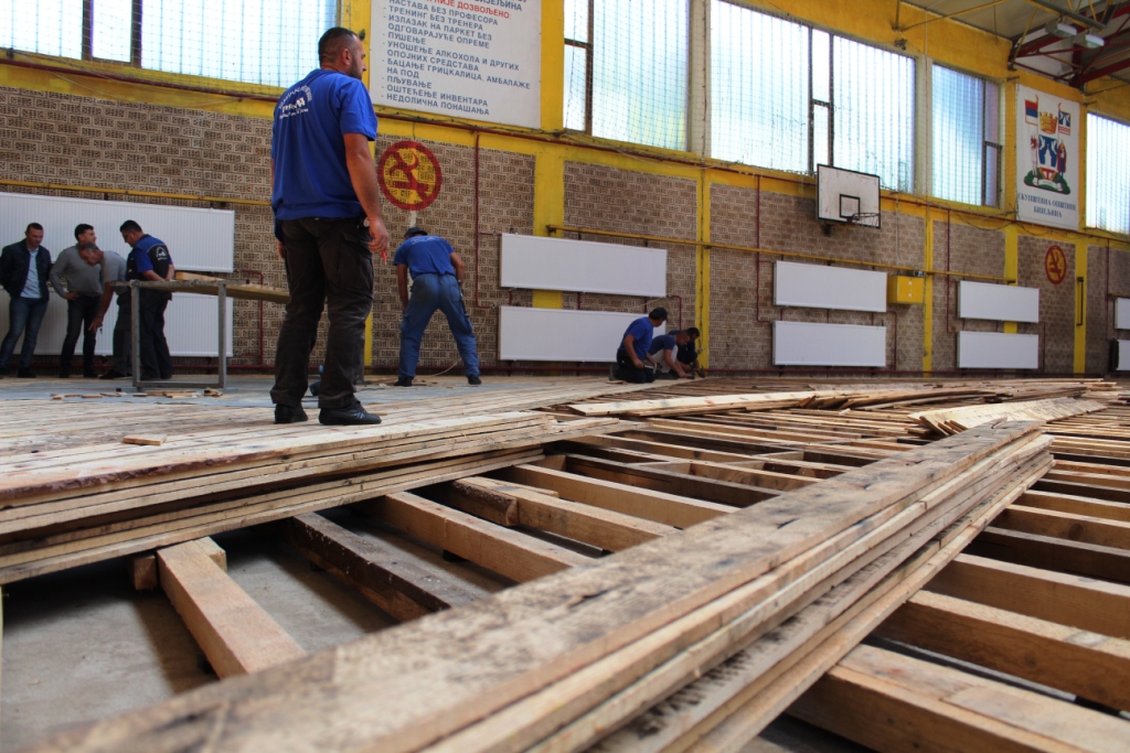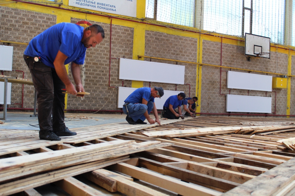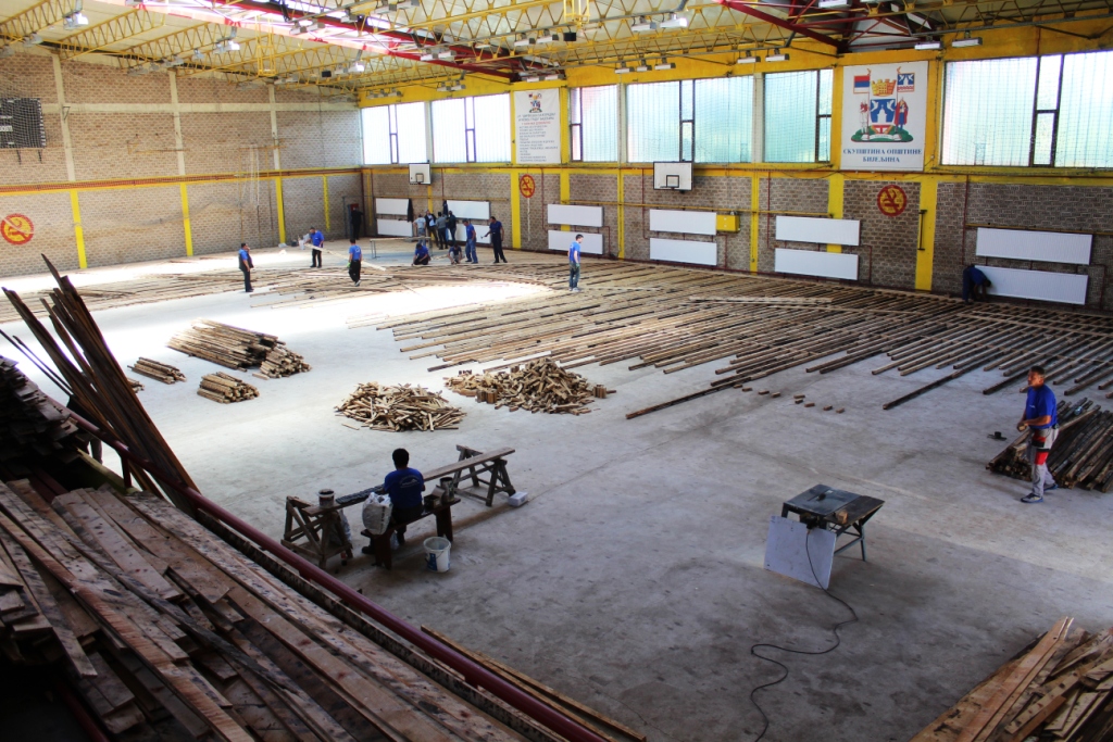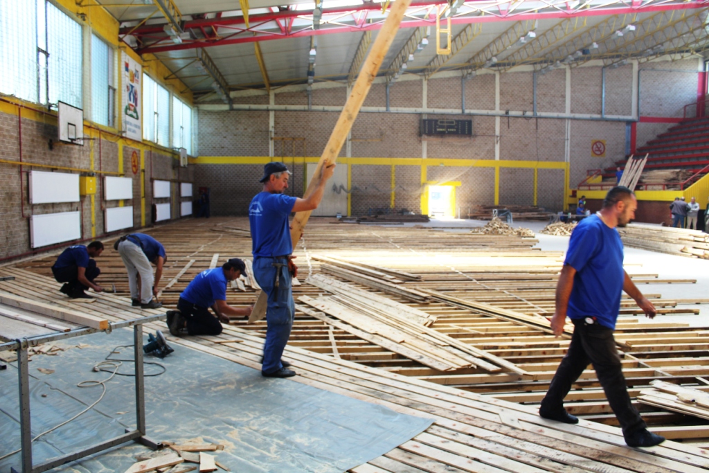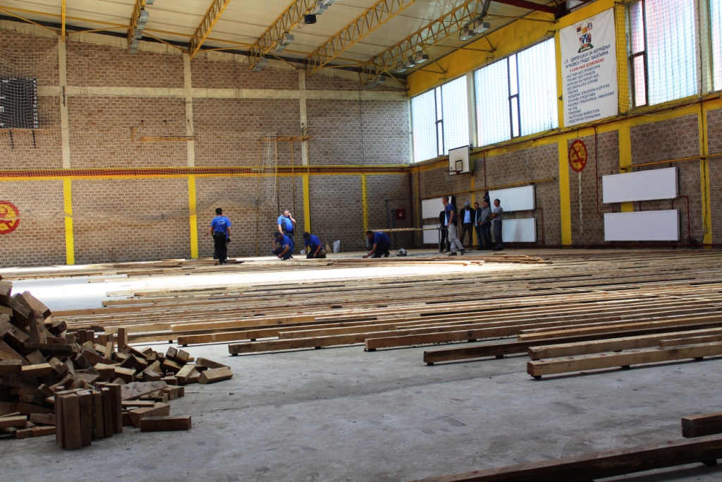 У току замјена паркета у спортској сали у Рачанској улици