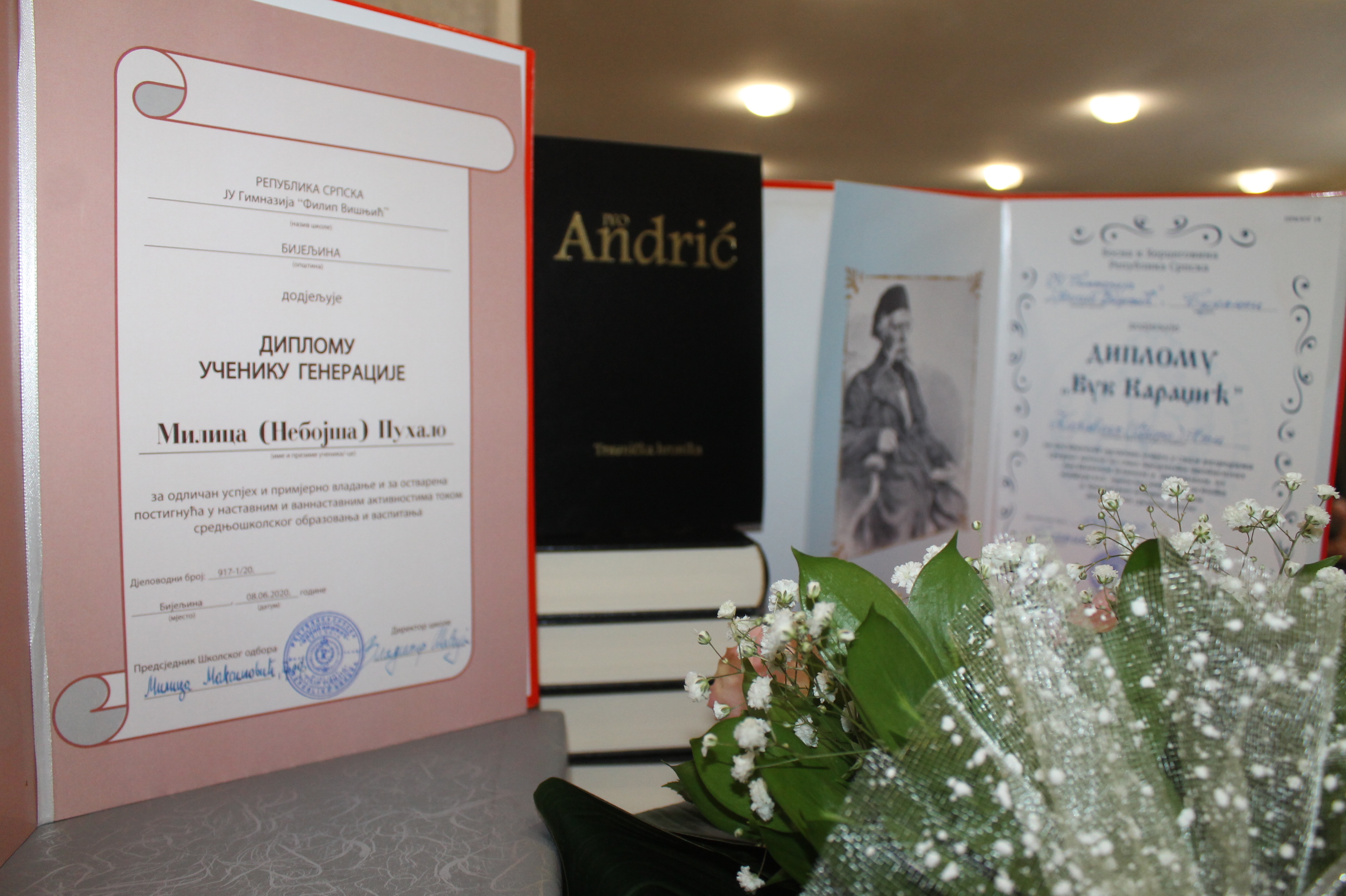 Фондација „Стојановић“ из Бијељине наставила је традицију додјеле повеље и новчане награде најбољем ученику генерације Гимназије „Филип Вишњић“. Овогодишњи добитник је Милица Пухало, која се својим знањем и ваннаставним активностима, међу којима су биле бројне титуле на такмичењима из математике и физике и учешће у програму Истраживачке станице „Петница“, издвојила између 220 матураната, заслуживши титулу најбољег ученика.
