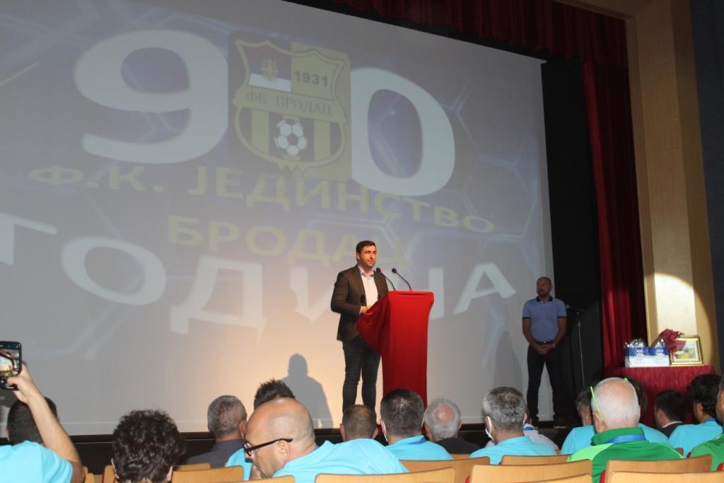 УПРИЛИЧЕН СВЕЧАНИ ПРИЈЕМ ПОВОДОМ ЈУБИЛЕЈА ФК „ЈЕДИНСТВО“ ИЗ БРОЦА