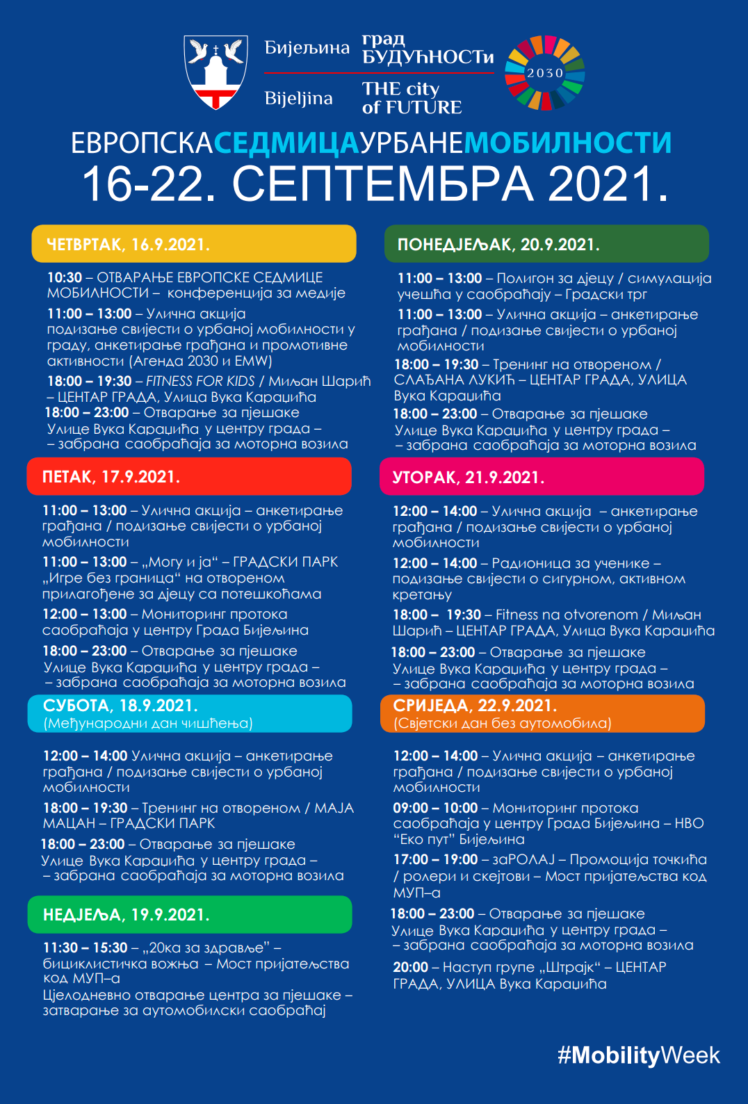 План активности у оквиру Европске седмице урбане мобилности 2021