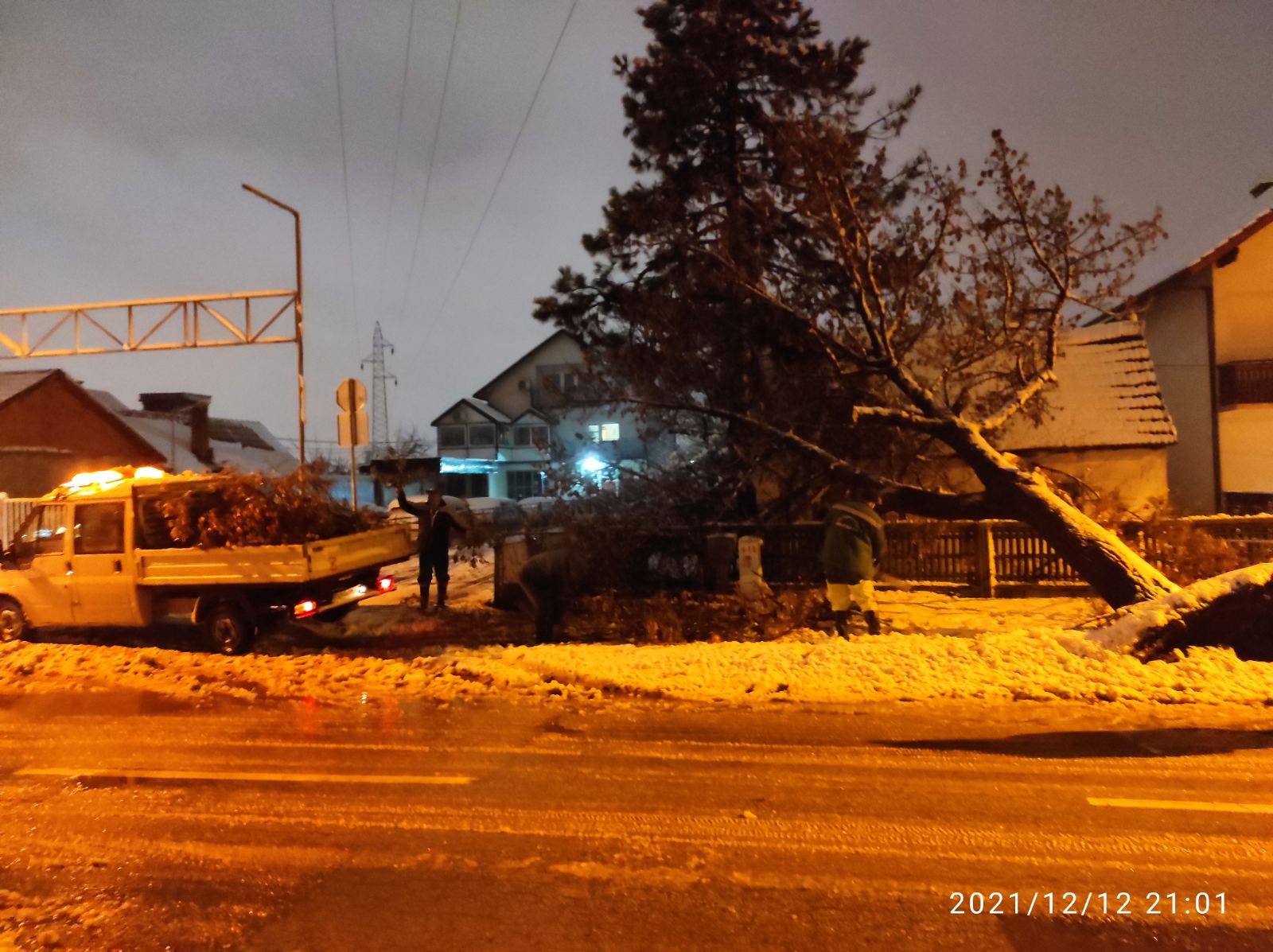 Радници предузећа "Комуналац" уклањају дрво које је пало на пут у Улици Раје Бањичића.