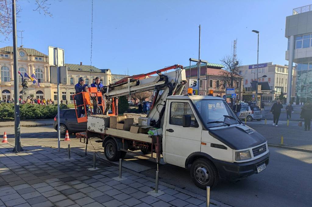 Поводом предстојећих празника, у Бијељини је данас почело украшавање централног градског трга. Осим Трга Краља Петра I Карађорђевића, новогодишња расвјета ће бити постављена на још неколико атрактивних локација у граду.