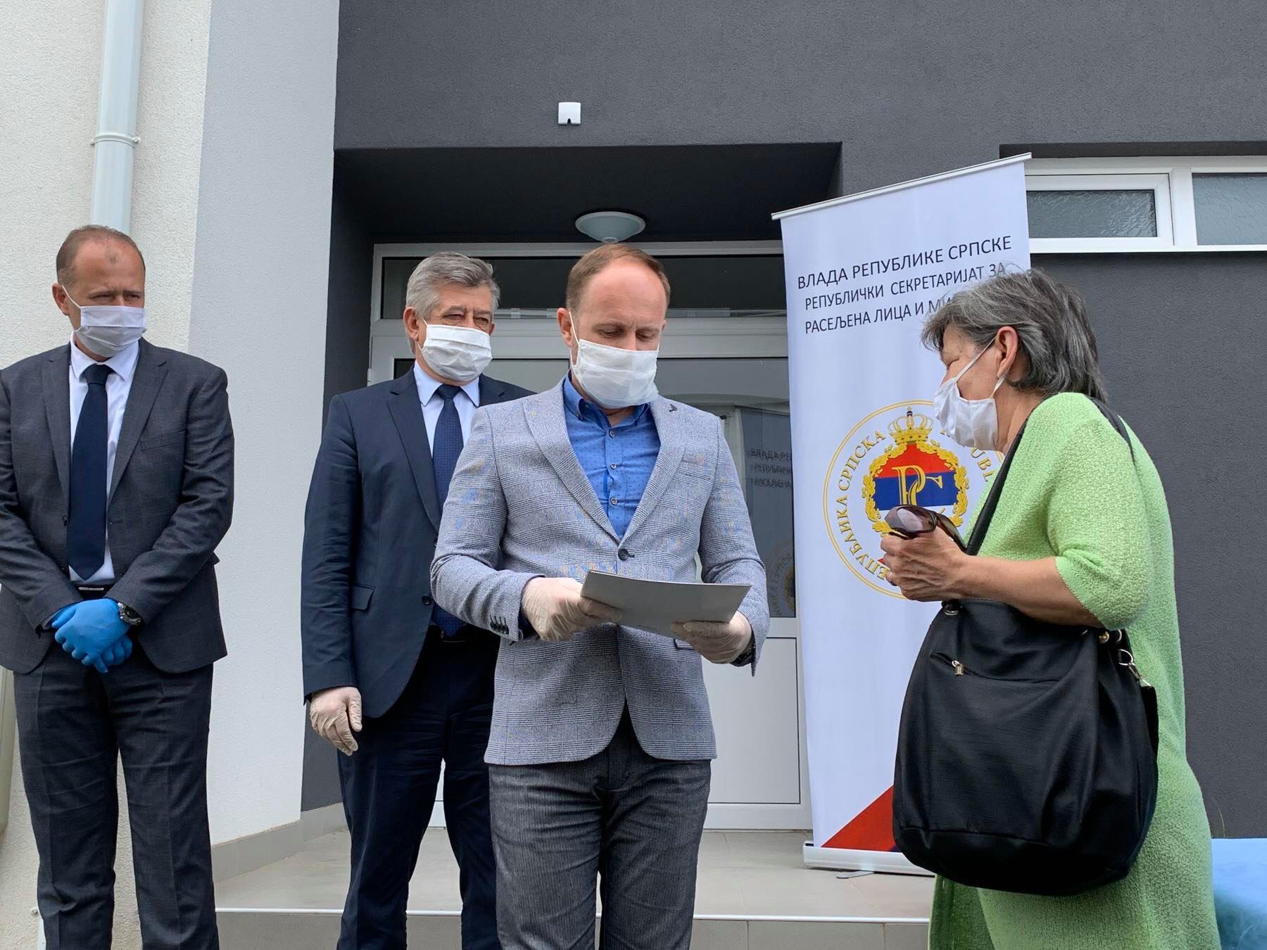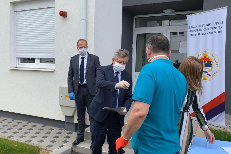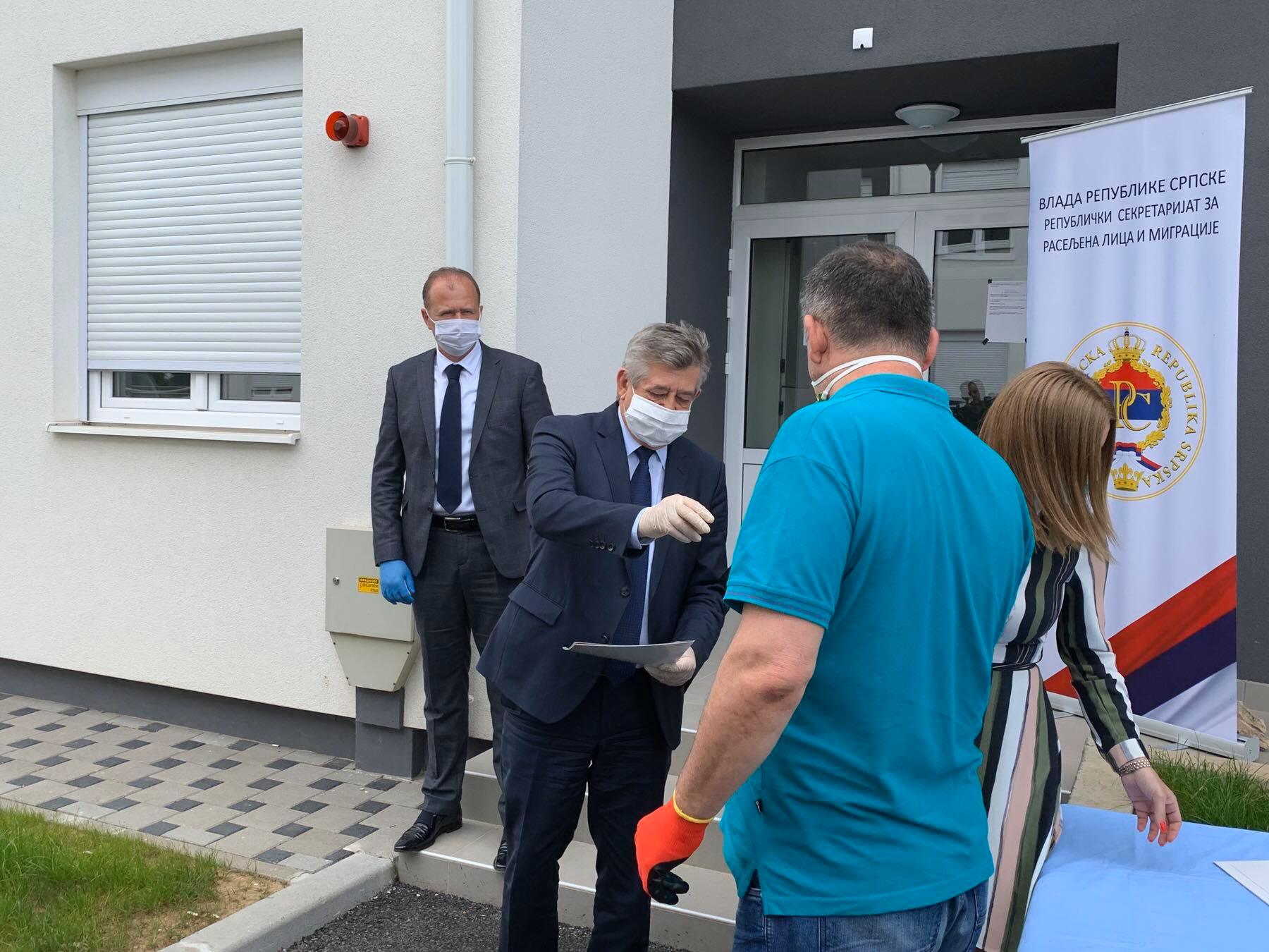 Због тренутне епидемиолошке ситуације, а у складу са прописима који важе у току ванредног стања услед вируса корона, градоначелник Бијељине Мићо Мићић и в.д. директора Републичког секретаријата за расељена лица и миграције Марко Аћић, уручили су кључеве за двије породице, док ће преосталих 28 породица бити усељено у наредним данима.