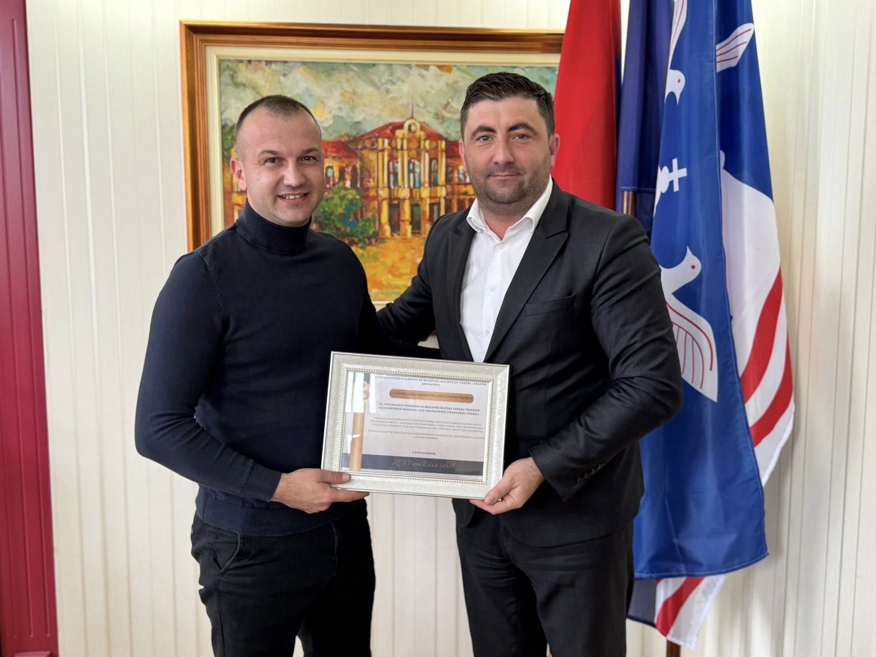 Представник Заједнице етажних власника "Петра Кочића 145 А" уручио је захвалницу градоначелнику Бијељине за организацију конкурса за најљепше окићену зграду и пружену финансијску подршку, захваљујући којој је прошле године уграђена топлотна пумпа и унапријеђена енергетска ефикасност, чиме је допринијето заштити животне средине.
