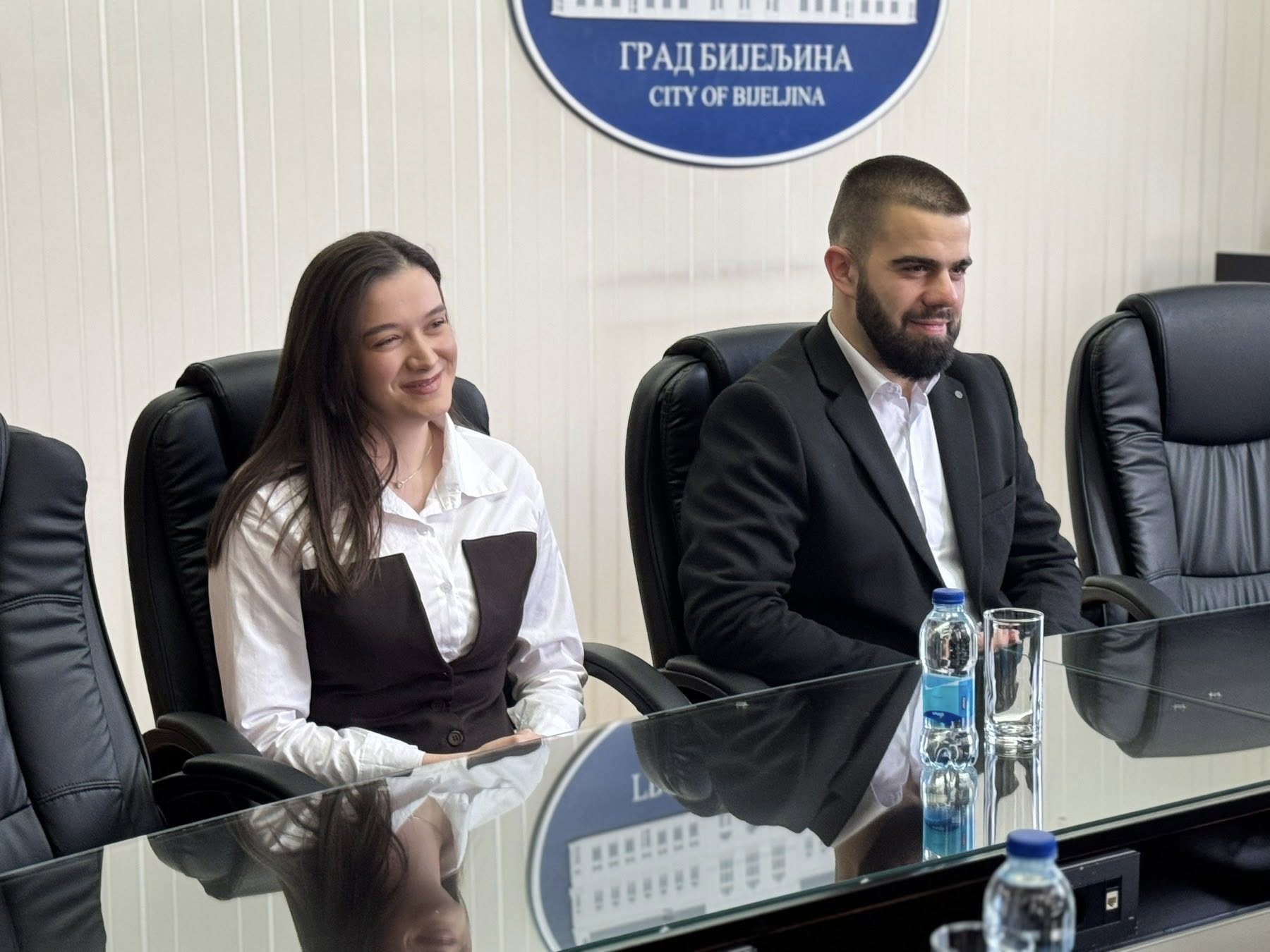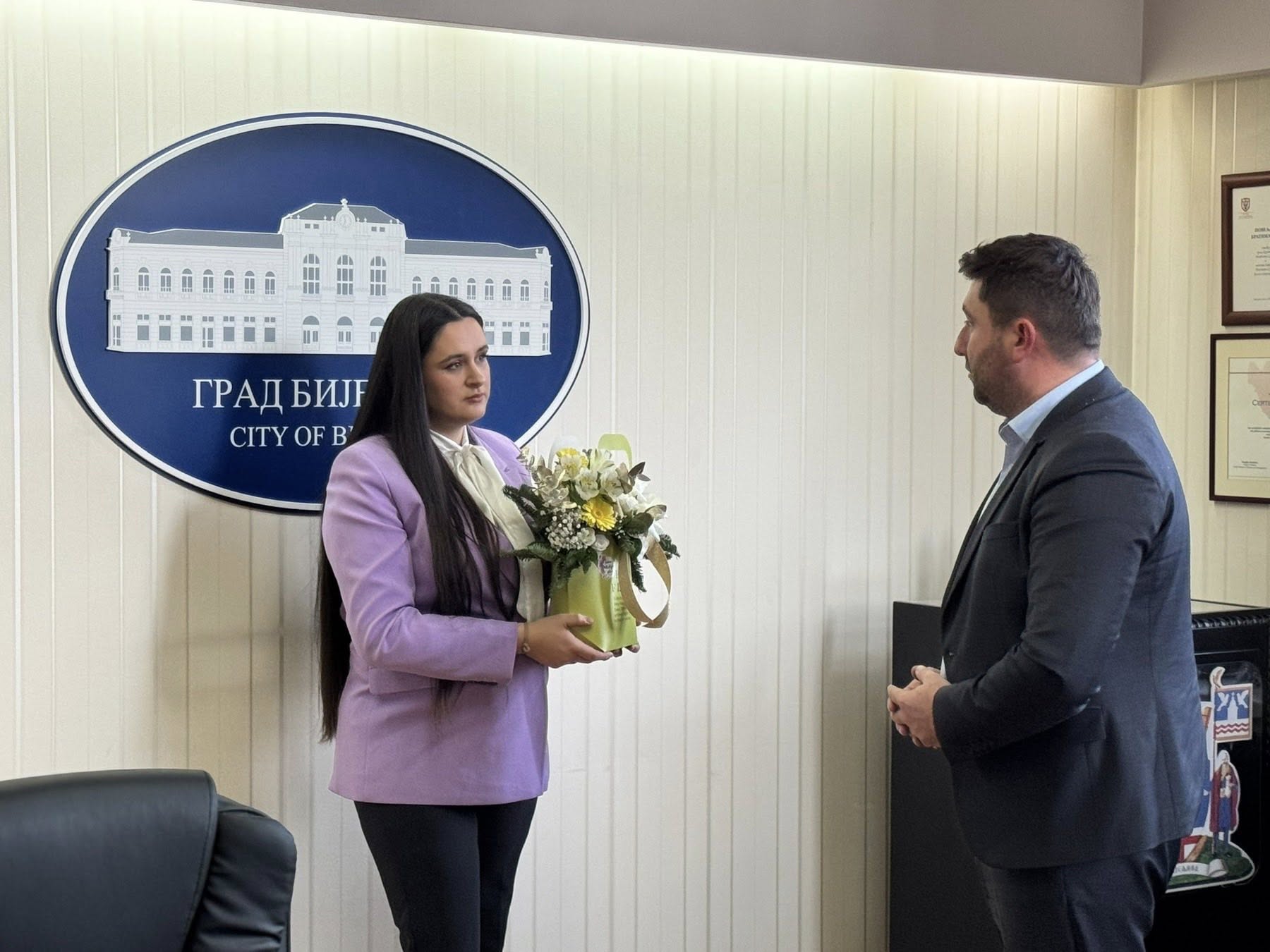 Градоначелник Бијељине Љубиша Петровић угостио је у Градској управи двоје младих људи из Бијељине који су у претходној академској години остварили изузетне резултате на факултетима на којима су студирали - Мирну Љубојевић и Дејана Пејића.